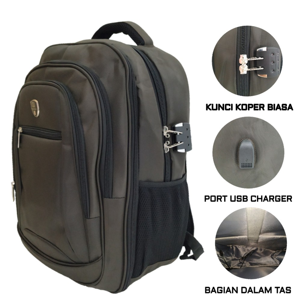 Tas Ransel Pria Laptop Usb Charger Backpack Polo Strike St 18825