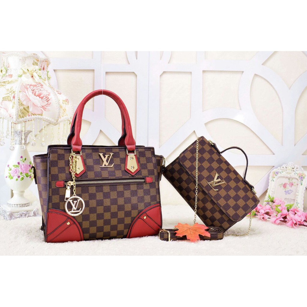 Tas Tote Fashion Lv Bag Set 2 In 1 Dengan Tas Selempang Kecil Dan Tali Panjang Shopee Indonesia