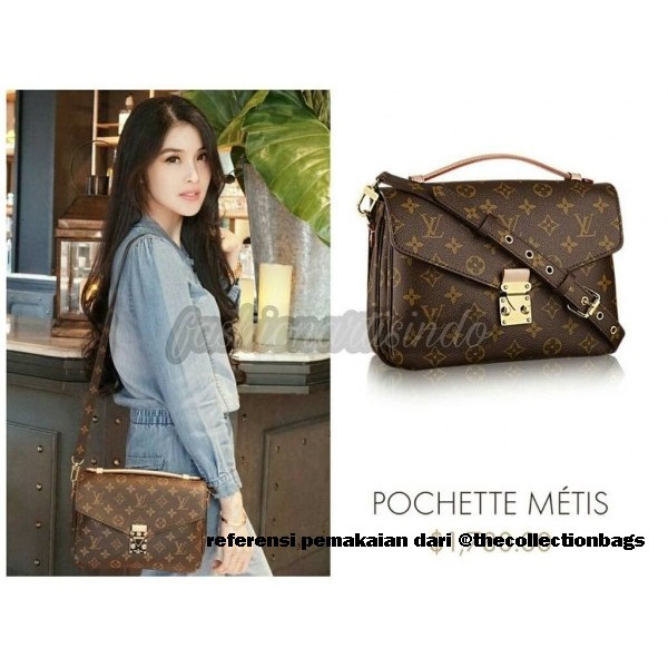 Tas Selempang Wanita Motif Desain Lv Gesper Tali Panjang Monogram Pochette Metis M43984 25 10 14 Cm Shopee Indonesia