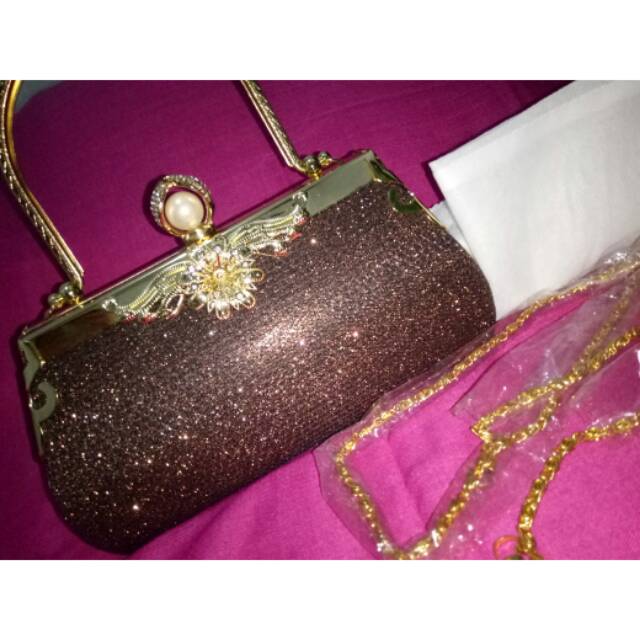 Harga jual tas tangan branded murah online jaman sekarang. Tas pesta cantik buat perempuan ini terbuat dari bahan virotex bermutu dengan tekstur halus berwarna coklat yang elegan.