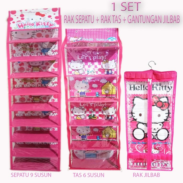 Promo Set 3 In 1 Hello Kitty Set Rak Tas Rak Sepatu Rak Jilbab