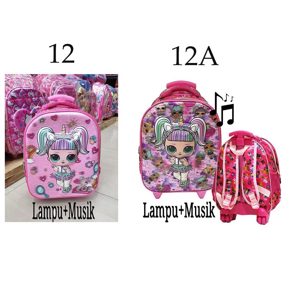 Dqo44 Tas Anak Sekolah Tk Trolley Lampu Musik Lol Unicorn L