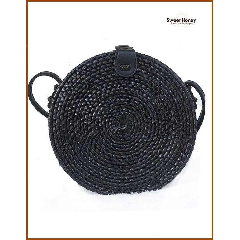 Sweet Honey Tas Rotan Murah Bali Bulat Polos Warna Hitam Bali
