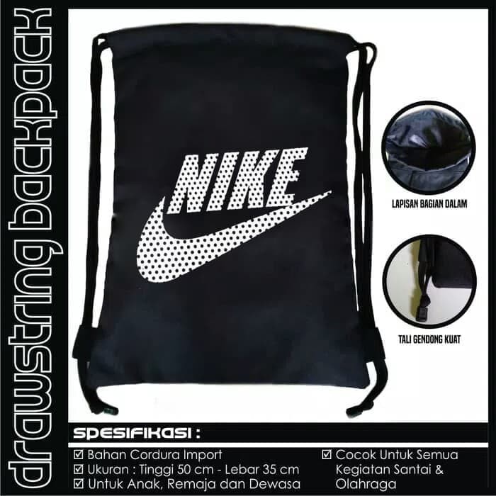 Tas Ransel Serut Drawstring Bag Tas Nike Kampus Olahraga