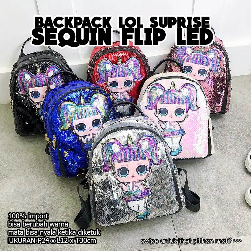 Tas Anak Ransel Sequin Flip Mata Bisa Nyala Backpack Lol Suprise
