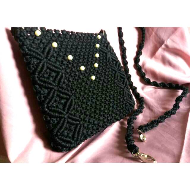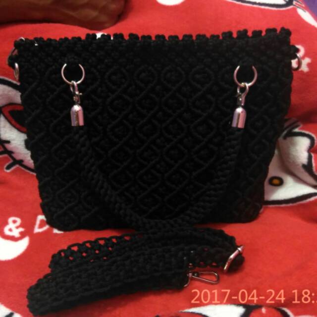 Tas Macrame Bahan Tali Kur Motif Mawar Hitam Shopee Indonesia